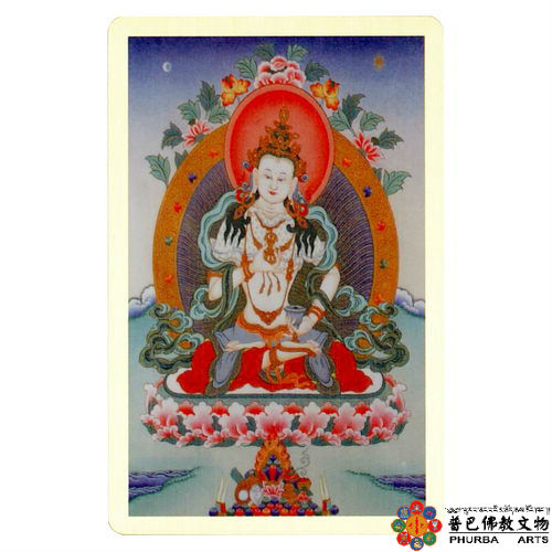 金剛薩埵-銅箔隨身唐卡/護身卡隨身攜帶,改善運勢業障糾纏尺寸 : 8.6 X 5.5 公分信用卡大小,可放皮夾每張銅箔隨身護身卡都有經過護貝加強保護背面印有相關咒文及解說金剛薩埵又稱「執金剛菩薩」(Vajradhara)、「金剛勇猛心菩薩」、「金剛手秘密主」、「金剛上首」、「金剛藏」、「祕密主」等。是佛教的大菩薩,以執金剛神的外型出現,通常身現一手持鈴,一手持金剛杵之相,象徵「堅固不壞之菩提心」。他與觀世音菩薩、文殊菩薩,合稱三族性尊,密宗以他為最初的起源。金剛薩埵具大神通,可以號令諸天神將、夜叉以降服妖魔,甚至能以珍寶護持修行者。其護法神有象徵知識、財富的毗沙門天與象鼻天等大神。龍王、阿修羅王等,也都護持金剛薩埵。尼泊爾佛教徒大多認為金剛薩埵降服了大自在天。金剛薩埵百字明咒唵。別炸薩多沙嘛牙。嘛奴巴拉雅。別炸薩多爹奴巴的叉。遮左咩巴哇。蘇多卡欲咩巴娃。蘇甫卡玉咩巴哇。晏奴囉多咩巴哇。沙爾哇。司地。咩不囉也叉。沙爾瓦。加爾麻。蘇渣咩。即打木。司里任古魯吽。哈哈。哈哈。呵。巴加問。沙爾瓦。打他架打。別炸嘛咩門渣。別至巴哇。嘛哈沙媽啞。薩唾啊。吽呸。